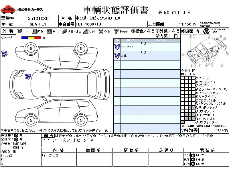 | メーカー・車種 | ホンダ シビック5HB EX (型式:6BA-FL1) | ||||||||||||||||||||||||||||||||||||||||