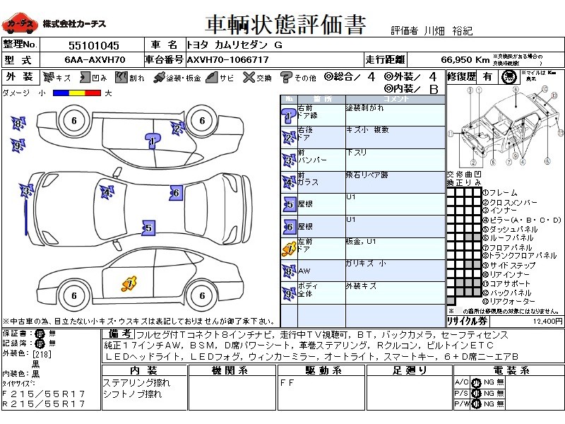 | メーカー・車種 | トヨタ カムリセダン G (型式:6AA-AXVH70) | ||||||||||||||||||||||||||||||||||||||||