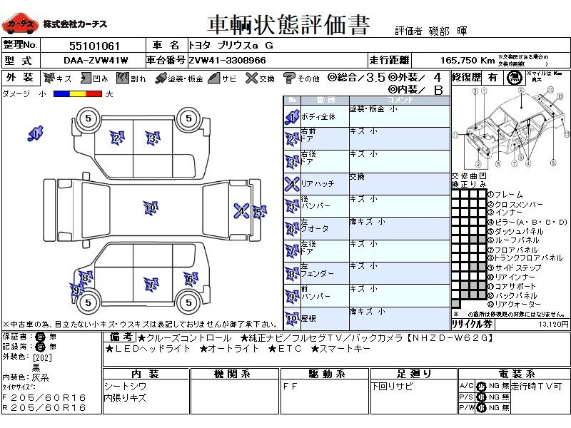 | メーカー・車種 | トヨタ プリウスa G (型式:DAA-ZVW41W) | ||||||||||||||||||||||||||||||||||||||||