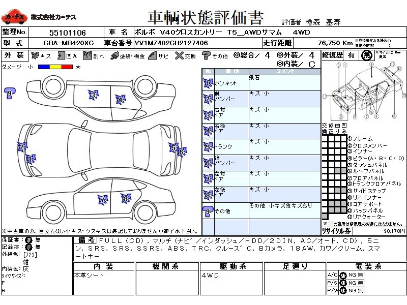 | メーカー・車種 | ボルボ V40クロスカントリー T5_AWDサマム (型式:CBA-MB420XC) | ||||||||||||||||||||||||||||||||||||||||