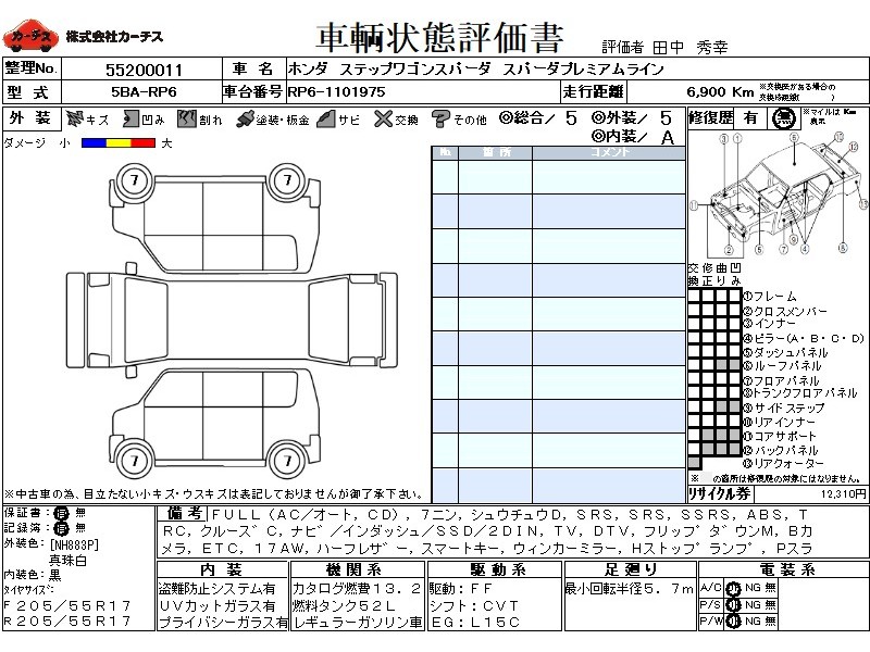 | メーカー・車種 | ホンダ ステップワゴンスパーダ スパーダプレミアムライン (型式:5BA-RP6) | ||||||||||||||||||||||||||||||||||||||||