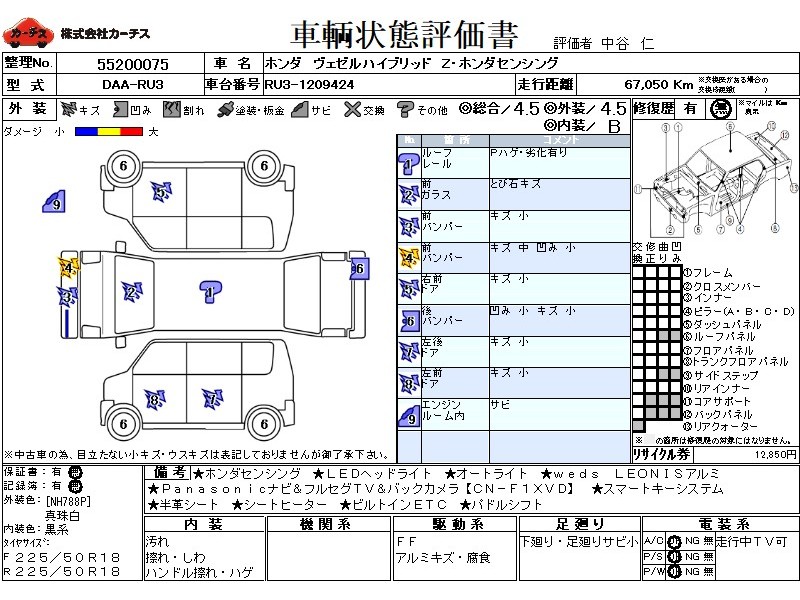 | セールスポイント | ホンダセンシング!パナソニックナビ&フルセグTV&DVD&BT&バックカメラ!LEDヘッドライト!オートライト!社外アルミ!半革シート!シートヒーター!ビルトインETC!スマートキーシステム!パドルシフト! | ||||||||||||||||||||||||||||||||||||||||