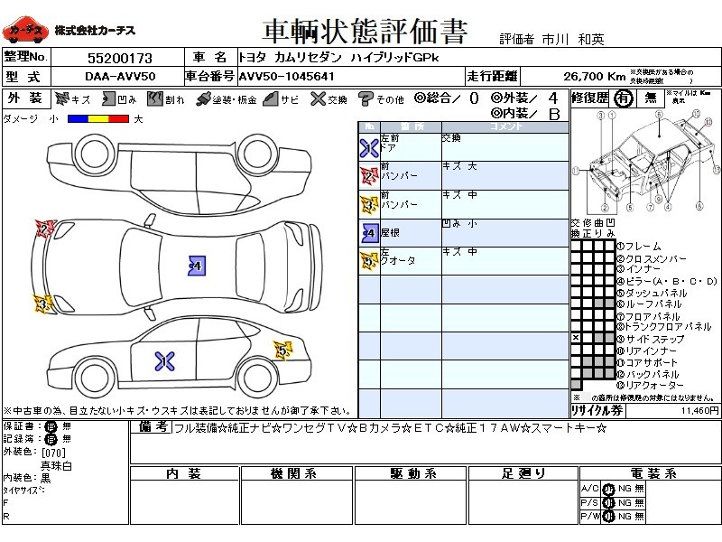 | メーカー・車種 | トヨタ カムリセダン ハイブリッドGPk (型式:DAA-AVV50) | ||||||||||||||||||||||||||||||||||||||||
