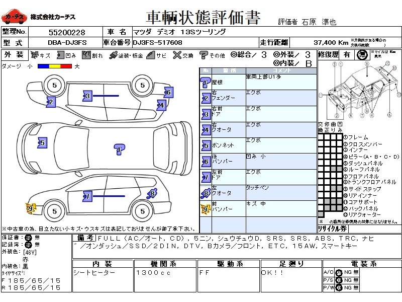 | メーカー・車種 | マツダ デミオ 13Sツーリング (型式:DBA-DJ3FS) | ||||||||||||||||||||||||||||||||||||||||