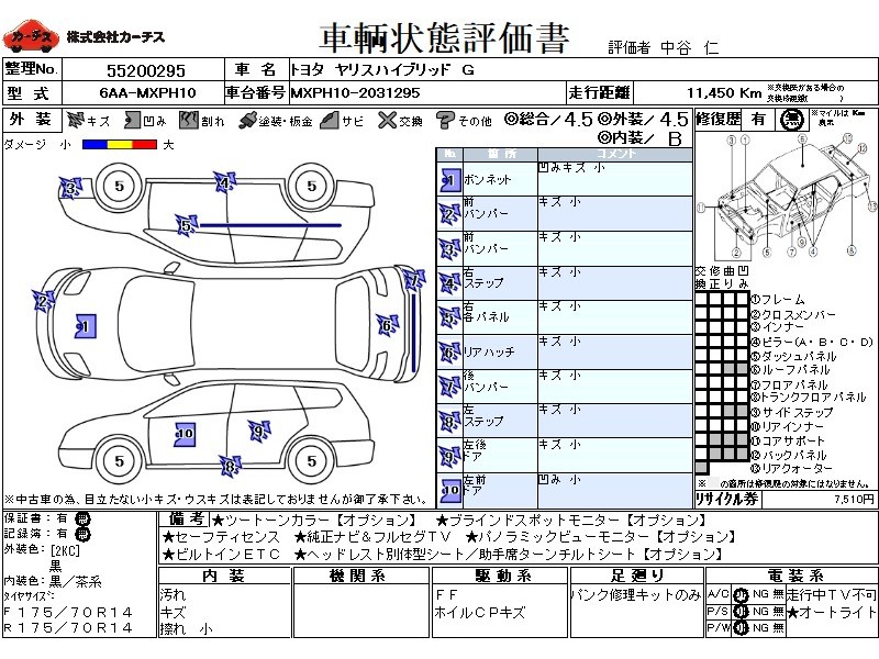 | メーカー・車種 | トヨタ ヤリスハイブリッド ハイブリッドG (型式:6AA-MXPH10) | ||||||||||||||||||||||||||||||||||||||||