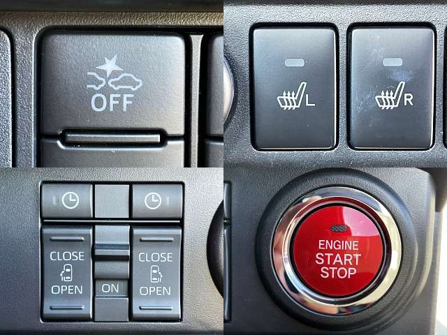 | セールスポイント | スマートアシスト アダプティブクルーズコントロール 純正9インチメモリーナビ&連動ETC フルセグTV BTオーディオ DVD再生 パノラマモニター キーフリーシステム 両側パワースライドドア LEDヘッドライト&LEDフォグ 純正15インチアルミ 純正エアロパーツ 人工皮革コンビシート F席シートヒーター ウィンカーミラー エコアイドル 禁煙車 | ||||||||||||||||||||||||||||||||||||||||