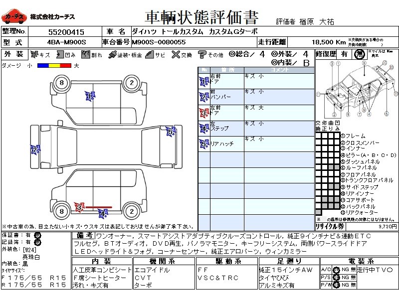 | メーカー・車種 | ダイハツ トールカスタム カスタムGターボ (型式:4BA-M900S) | ||||||||||||||||||||||||||||||||||||||||