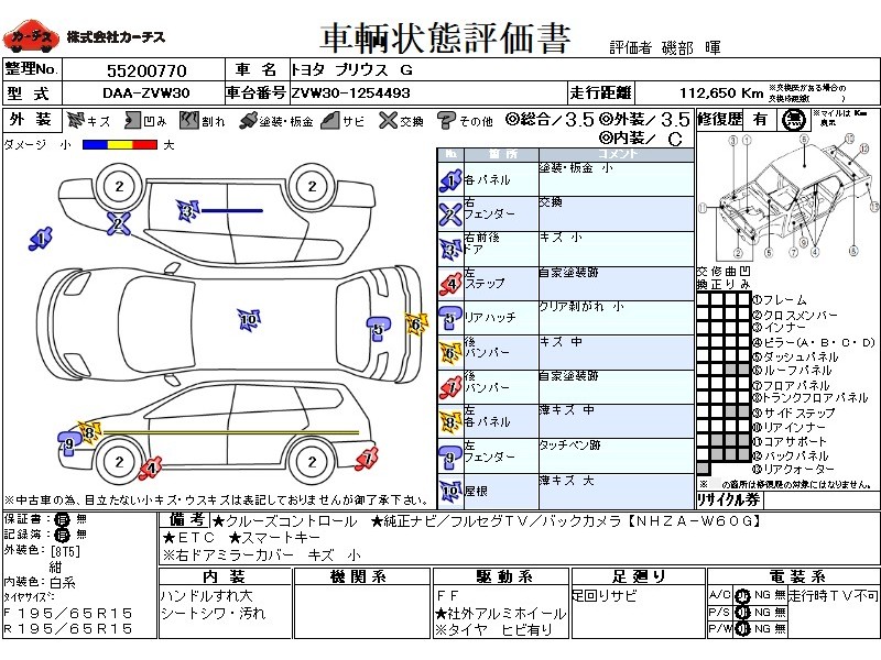 | メーカー・車種 | トヨタ プリウス G (型式:DAA-ZVW30) | ||||||||||||||||||||||||||||||||||||||||