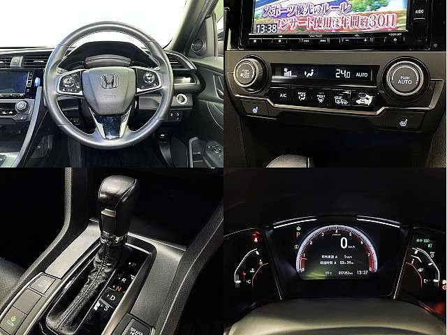 | セールスポイント | フルセグ付GATHERSナビ!バックカメラ!ホンダセンシング!ACC!LKAS!トップロードサンルーフ!無限Fスポイラー!純正18インチAW!ヒーター付合皮コンビPシート!革巻ステアリング!パドルシフト!LEDヘッドライト!LEDイエローフォグ!ウィンカーミラー!オートライト!スマートキー!ビルトインETC2.0! | ||||||||||||||||||||||||||||||||||||||||