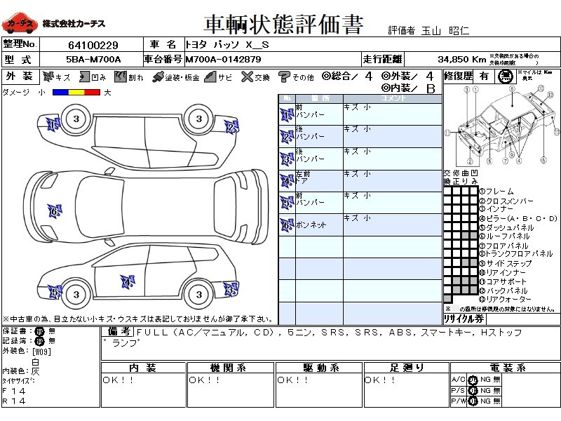 | メーカー・車種 | トヨタ パッソ X_S (型式:5BA-M700A) | ||||||||||||||||||||||||||||||||||||||||