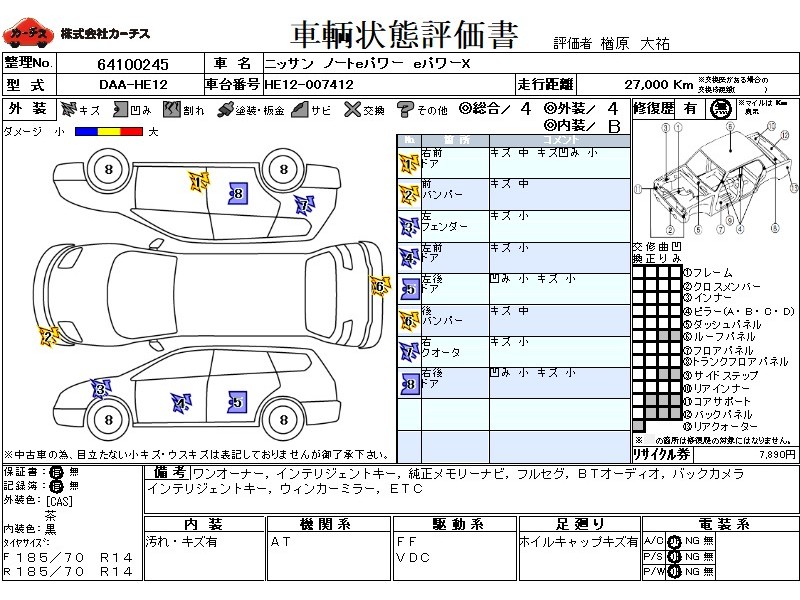 | メーカー・車種 | 日産 ノートeパワー eパワーX (型式:DAA-HE12) | ||||||||||||||||||||||||||||||||||||||||
