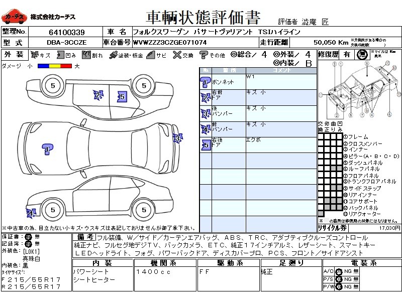 | メーカー・車種 | フォルクスワーゲン パサートヴァリアント TSIハイライン (型式:DBA-3CCZE) | ||||||||||||||||||||||||||||||||||||||||