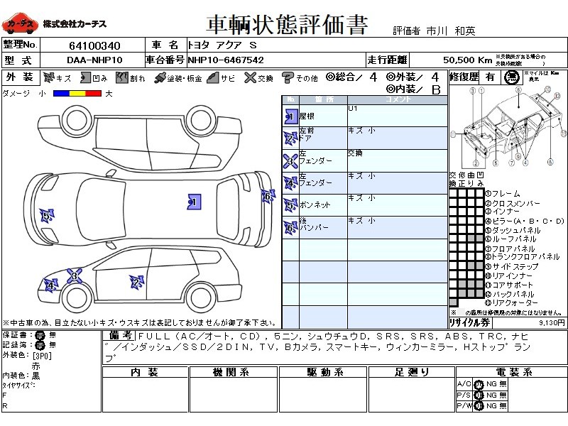 | メーカー・車種 | トヨタ アクア S (型式:DAA-NHP10) | ||||||||||||||||||||||||||||||||||||||||