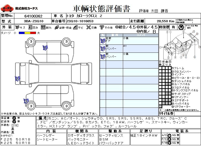 | メーカー・車種 | トヨタ カローラクロス Z (型式:3BA-ZSG10) | ||||||||||||||||||||||||||||||||||||||||