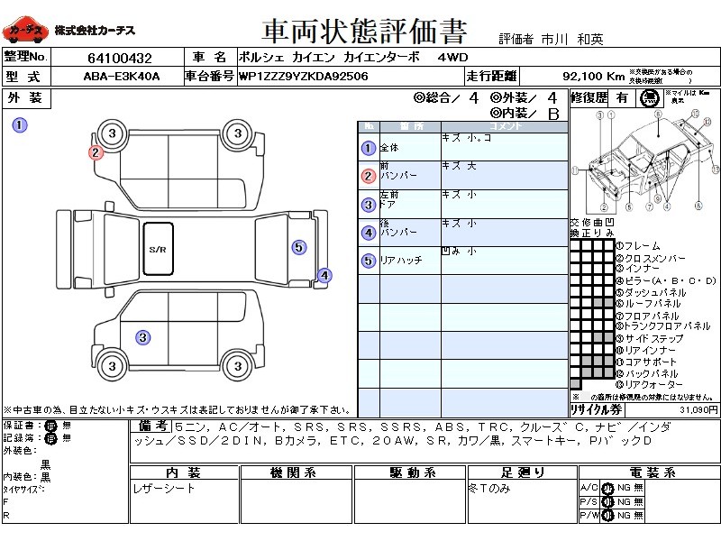 | メーカー・車種 | ポルシェ カイエン カイエンターボ (型式:ABA-E3K40A) | ||||||||||||||||||||||||||||||||||||||||