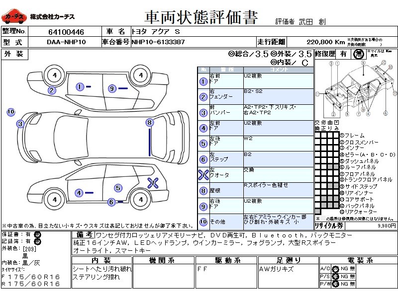 | メーカー・車種 | トヨタ アクア S (型式:DAA-NHP10) | ||||||||||||||||||||||||||||||||||||||||