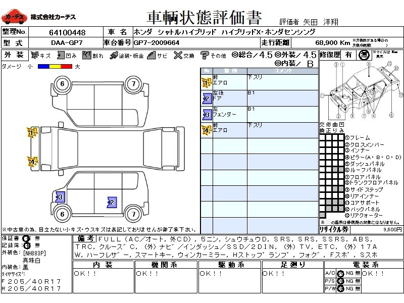 | セールスポイント | ★禁煙★ホンダセンシング★社外アルミ★エアロ★パイオニアウーハー★フルセグ★バックカメラ | ||||||||||||||||||||||||||||||||||||||||