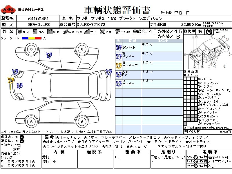 | メーカー・車種 | マツダ マツダ2 15SブラックトーンEd (型式:5BA-DJLFS) | ||||||||||||||||||||||||||||||||||||||||
