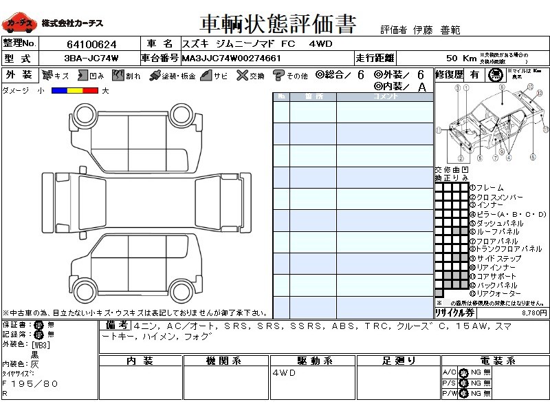 | メーカー・車種 | スズキ ジムニーノマド FC (型式:3BA-JC74W) | ||||||||||||||||||||||||||||||||||||||||