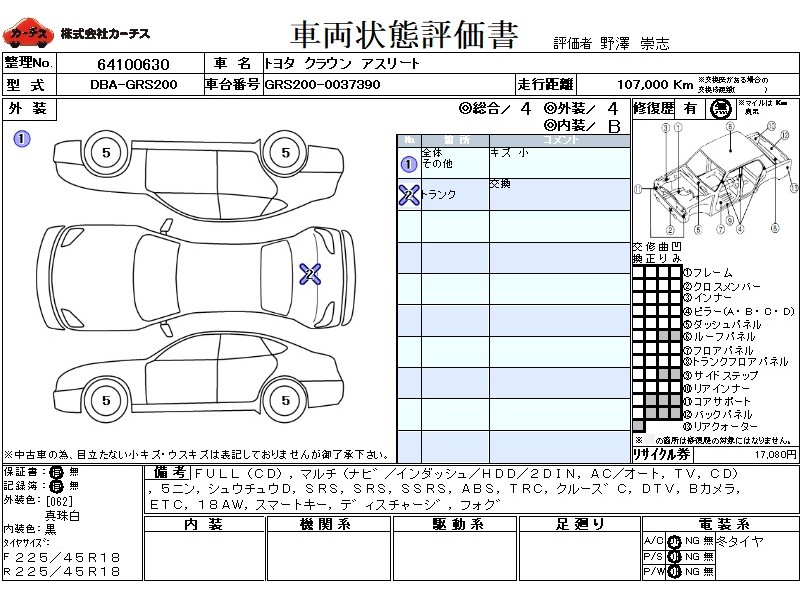 | メーカー・車種 | トヨタ クラウン アスリート (型式:DBA-GRS200) | ||||||||||||||||||||||||||||||||||||||||