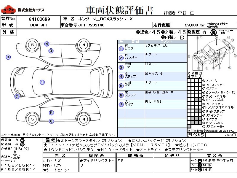 | メーカー・車種 | ホンダ N BOXスラッシュ X (型式:DBA-JF1) | ||||||||||||||||||||||||||||||||||||||||
