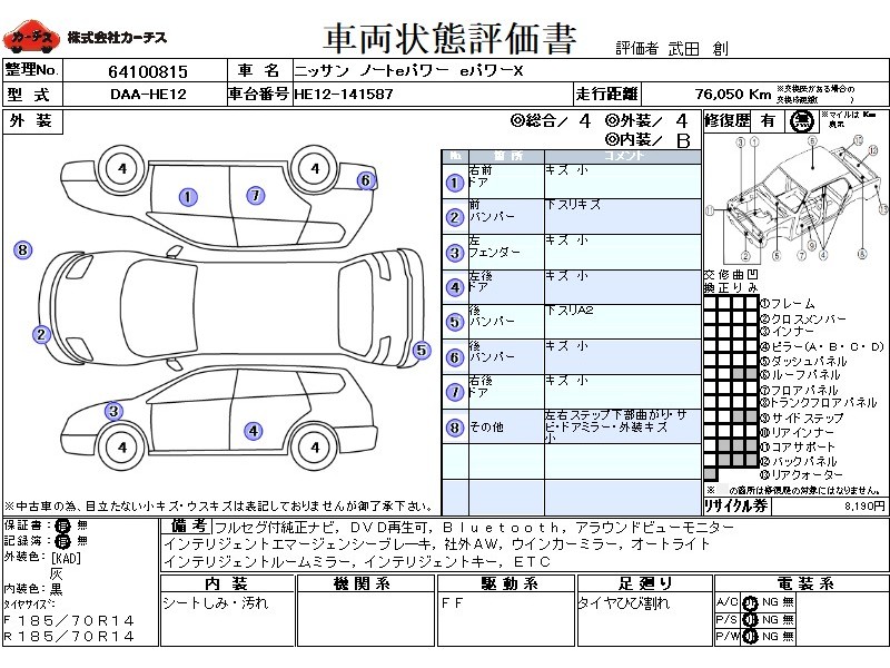 | メーカー・車種 | 日産 ノートeパワー eパワーX (型式:DAA-HE12) | ||||||||||||||||||||||||||||||||||||||||