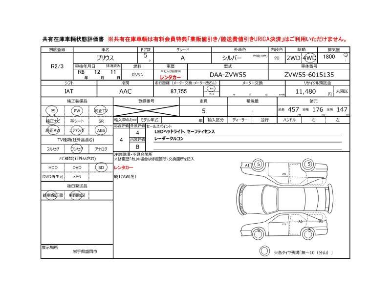| メーカー・車種 | トヨタ プリウス A (型式:DAA-ZVW55) | ||||||||||||||||||||||||||||||||||||||||