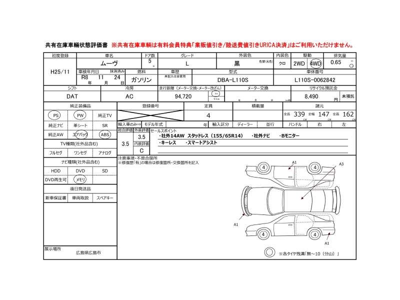 | メーカー・車種 | ダイハツ ムーヴ L (型式:DBA-LA110S) | ||||||||||||||||||||||||||||||||||||||||
