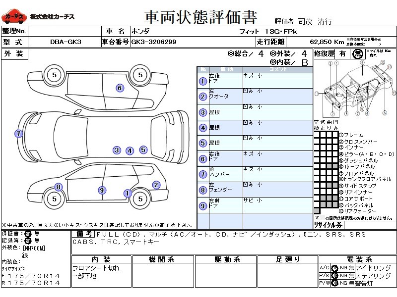 | メーカー・車種 | ホンダ フィット 13G・FPk (型式:DBA-GK3) | ||||||||||||||||||||||||||||||||||||||||