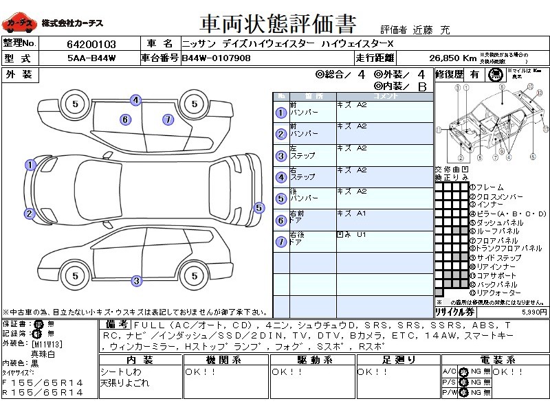 | メーカー・車種 | 日産 デイズハイウェイスター ハイウェイスターX (型式:5AA-B44W) | ||||||||||||||||||||||||||||||||||||||||