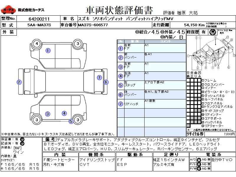 | メーカー・車種 | スズキ ソリオバンディット バンディットハイブリッドMV (型式:5AA-MA37S) | ||||||||||||||||||||||||||||||||||||||||