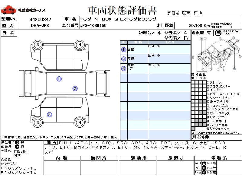 | メーカー・車種 | ホンダ N BOX G・EXホンダセンシング (型式:DBA-JF3) | ||||||||||||||||||||||||||||||||||||||||