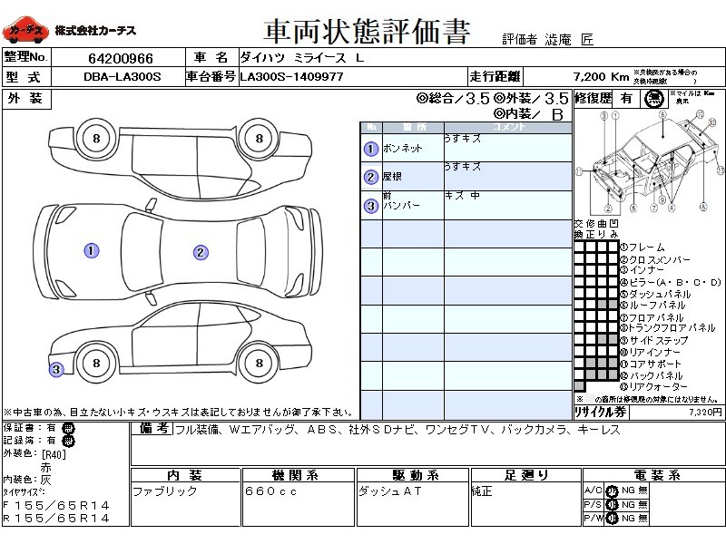 | メーカー・車種 | ダイハツ ミライース L (型式:DBA-LA300S) | ||||||||||||||||||||||||||||||||||||||||