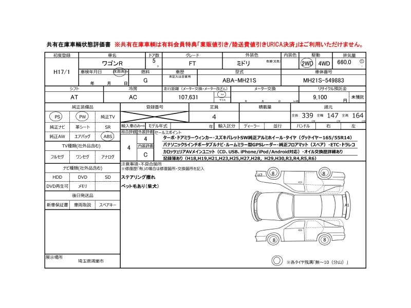 | メーカー・車種 | スズキ ワゴンR FT (型式:ABA-MH21S) | ||||||||||||||||||||||||||||||||||||||||