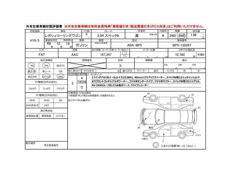| メーカー・車種 | スバル レガシィツーリングワゴン 2.0RスペックB (型式:ABA-BP5) | ||||||||||||||||||||||||||||||||||||||||