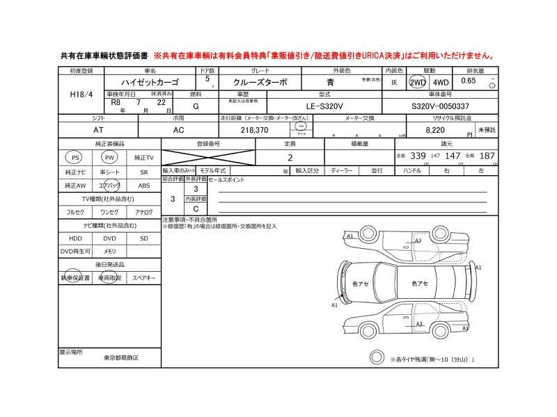 | メーカー・車種 | ダイハツ ハイゼットカーゴ クルーズターボ (型式:LE-S320V) | ||||||||||||||||||||||||||||||||||||||||