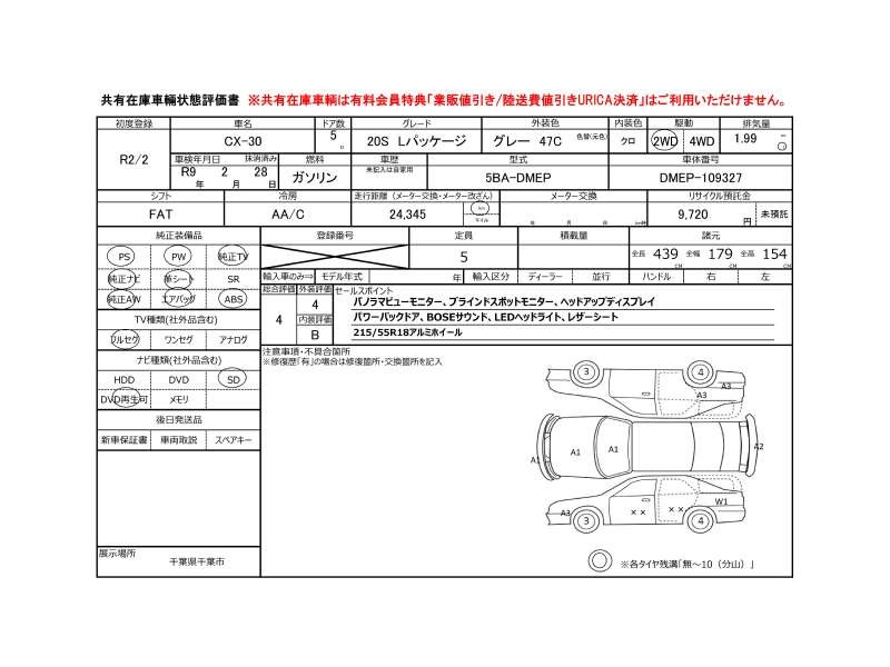 | メーカー・車種 | マツダ CX-30 20S_LPk (型式:5BA-DMEP) | ||||||||||||||||||||||||||||||||||||||||