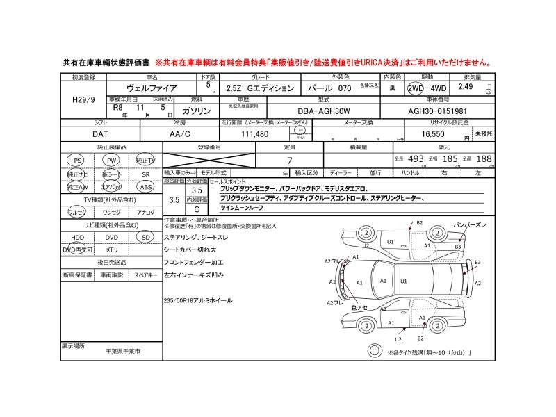 | メーカー・車種 | トヨタ ヴェルファイア Z_GEd (型式:DBA-AGH30W) | ||||||||||||||||||||||||||||||||||||||||