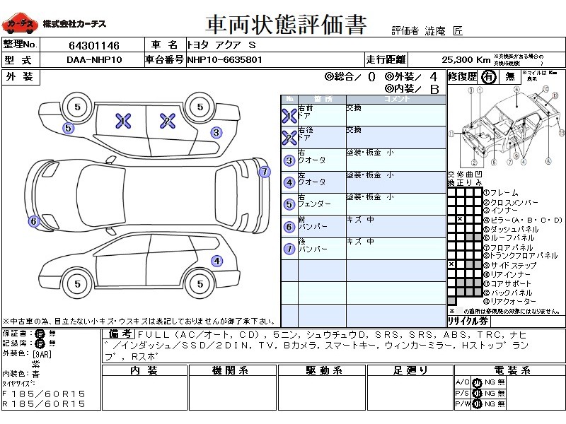 | メーカー・車種 | トヨタ アクア S (型式:DAA-NHP10) | ||||||||||||||||||||||||||||||||||||||||