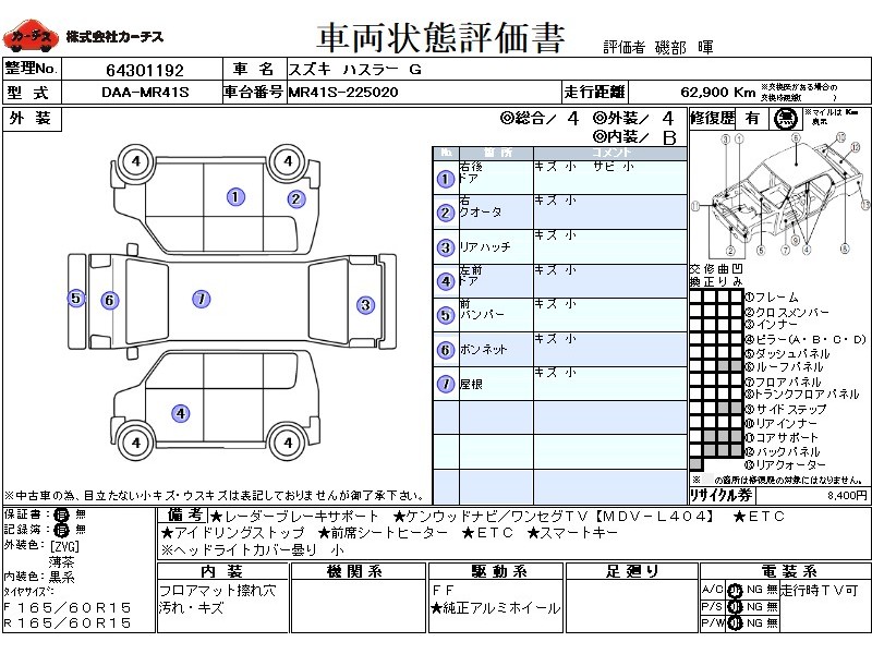 | メーカー・車種 | スズキ ハスラー G (型式:DAA-MR41S) | ||||||||||||||||||||||||||||||||||||||||