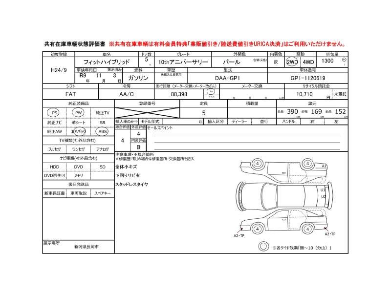 | メーカー・車種 | ホンダ フィットハイブリッド ハイブリッド・10thAnv (型式:DAA-GP1) | ||||||||||||||||||||||||||||||||||||||||