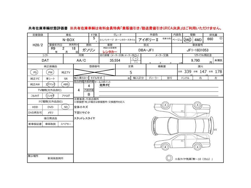 | メーカー・車種 | ホンダ N BOX G・LPk2トーンカラースタイル (型式:DBA-JF1) | ||||||||||||||||||||||||||||||||||||||||