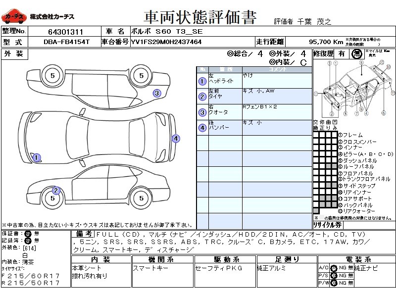 | メーカー・車種 | ボルボ S60 T3_SE (型式:DBA-FB4154T) | ||||||||||||||||||||||||||||||||||||||||