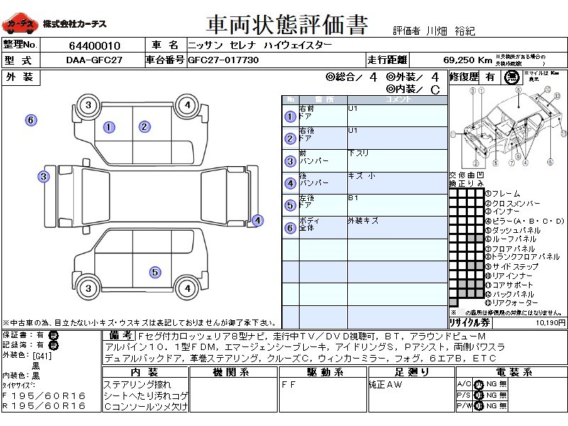 | メーカー・車種 | 日産 セレナ ハイウェイスター (型式:DAA-GFC27) | ||||||||||||||||||||||||||||||||||||||||