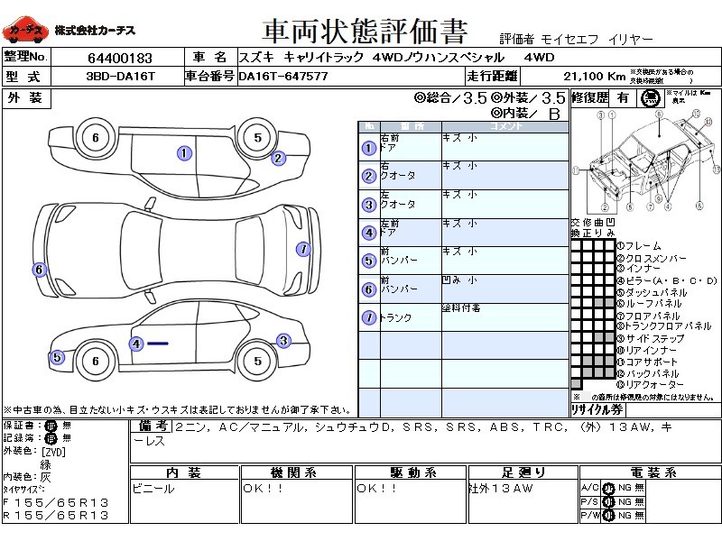 | メーカー・車種 | スズキ キャリイトラック 4WDノウハンスペシャル (型式:3BD-DA16T) | ||||||||||||||||||||||||||||||||||||||||