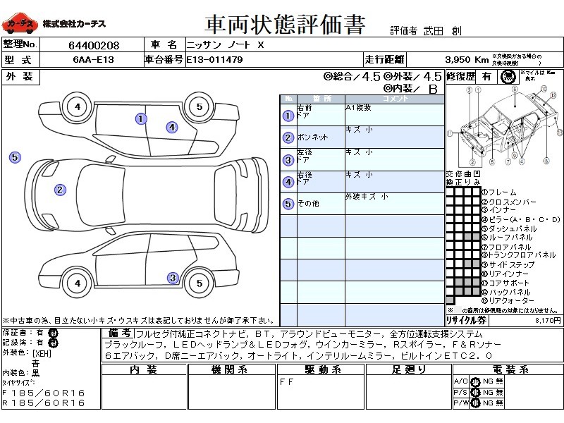 | メーカー・車種 | 日産 ノート X (型式:6AA-E13) | ||||||||||||||||||||||||||||||||||||||||