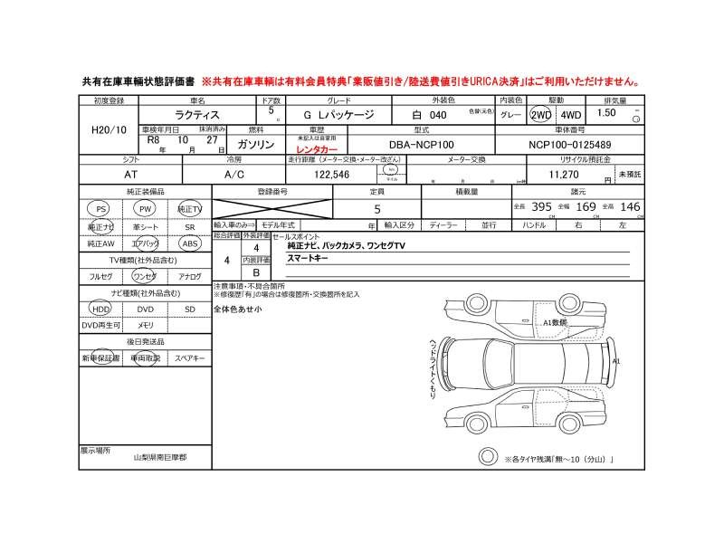 | メーカー・車種 | トヨタ ラクティス G_LPk (型式:DBA-NCP100) | ||||||||||||||||||||||||||||||||||||||||