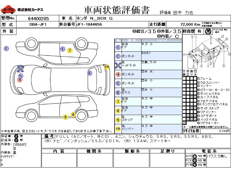 | メーカー・車種 | ホンダ N BOX G (型式:DBA-JF1) | ||||||||||||||||||||||||||||||||||||||||