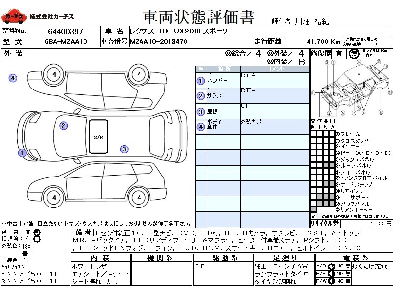 | メーカー・車種 | レクサス UX UX200Fスポーツ (型式:6BA-MZAA10) | ||||||||||||||||||||||||||||||||||||||||