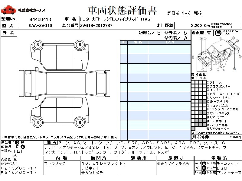 | メーカー・車種 | トヨタ カローラクロスハイブリッド HVS (型式:6AA-ZVG13) | ||||||||||||||||||||||||||||||||||||||||